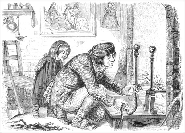 Aperçut un serpent sur la neige étendu,