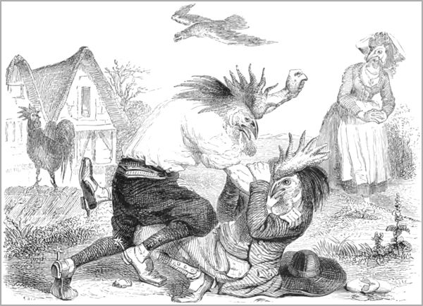 Deux coqs vivaient en paix : une poule survint,