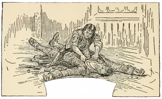 À nous deux, et non sans peine, nous arrivâmes à le porter en haut et à le déposer sur son lit. Sa tête retomba sur l’oreiller, comme s’il allait s’évanouir.